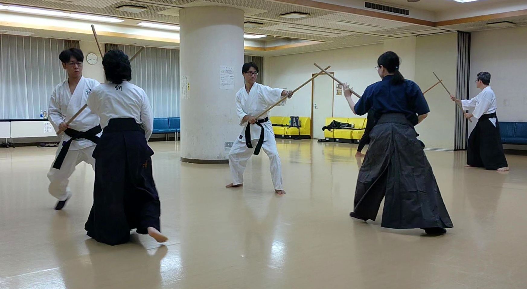 杖術:素振り(突き、袈裟、袈裟の受け(上、下)、初伝3本目、