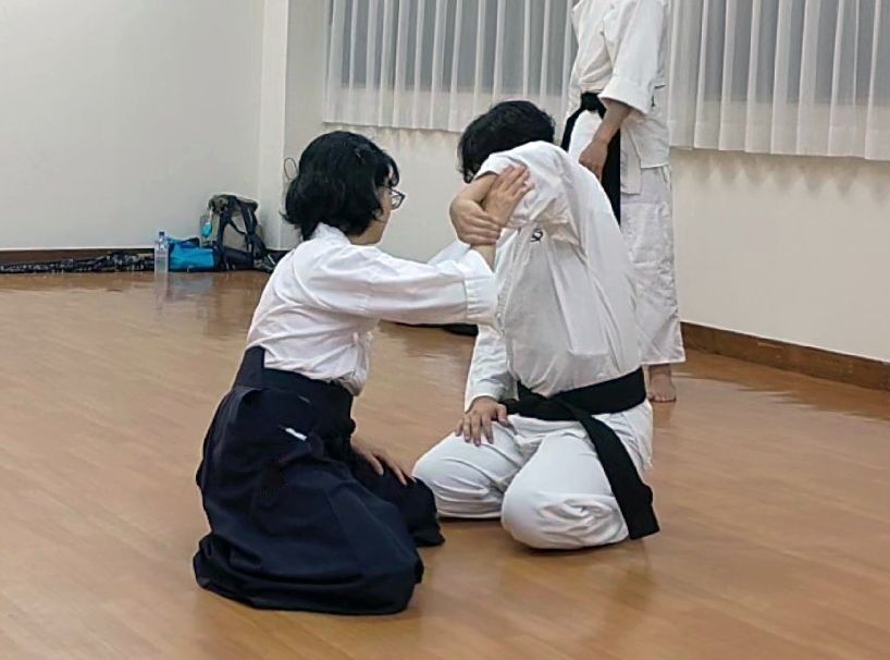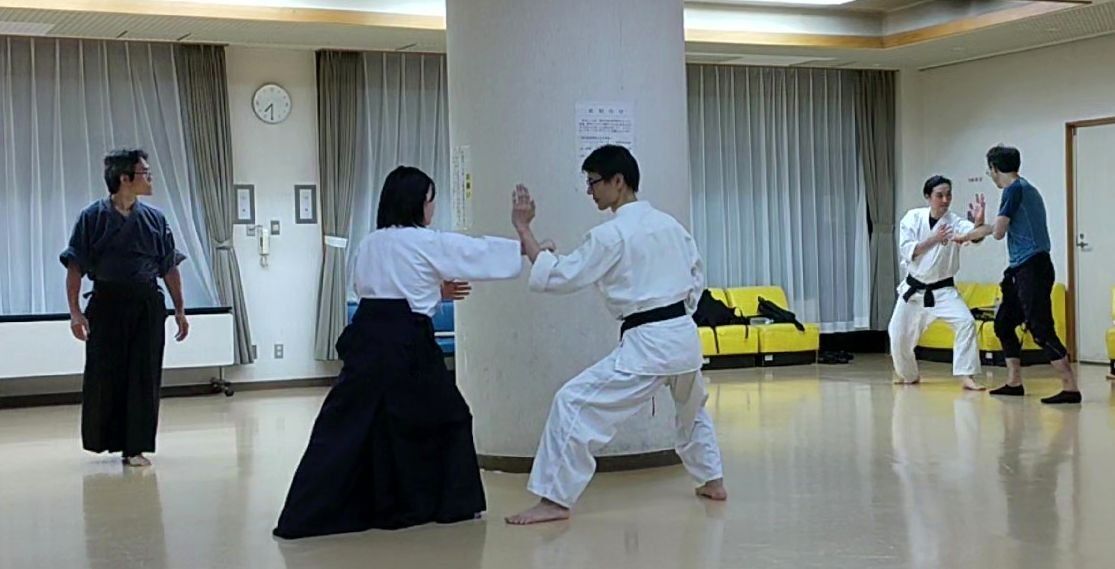 体術・柔術:礼法、腕を押さえられたところから返す、受身、歩法(半身、半身入れ替え)、
