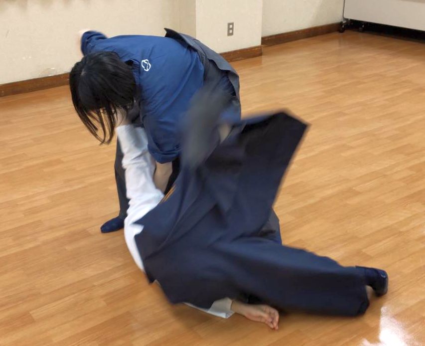前廻り受身は、ふわっとその場で行いたいが、腰を浮かせてそのスペースに上半身を入れる、ということが緩みだけではまだできず、手順で足を引いて腰を浮かせてそこに、という感じでしかできない。