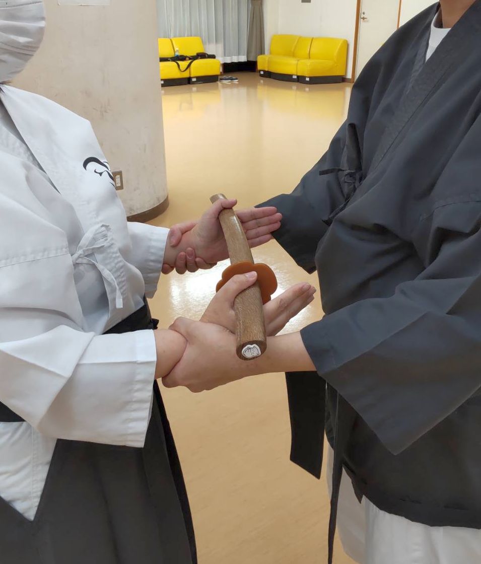 手解きはますこさん工夫の方法で小太刀を使って行っていた。