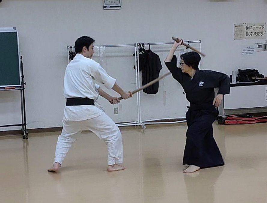 間合いが杖や剣術とだいぶ違うため、打ち込む位置を明確にして、踏み込むとどこまで届くのか確認したうえで打ち込む必要がある。