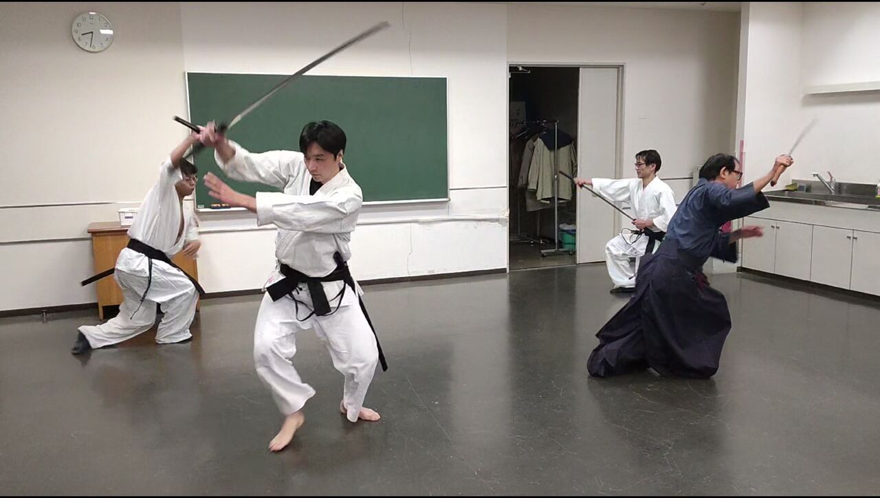 だいぶ上手だが、斬手を意識するあまり肘が張って苦しくなっているところがあったので、そこを楽に半身を開くような感じでやってもらうとかなりいい感じになった。